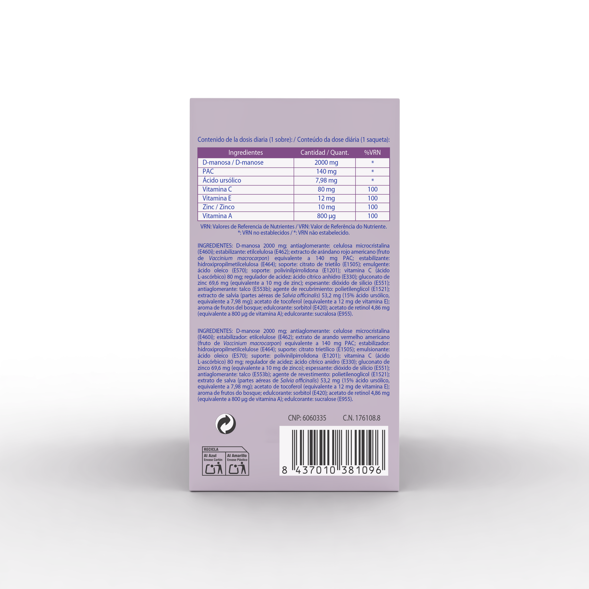 - D-Manosa de liberación prolongada evitan que las bacterias se adhieran al tracto urinario.