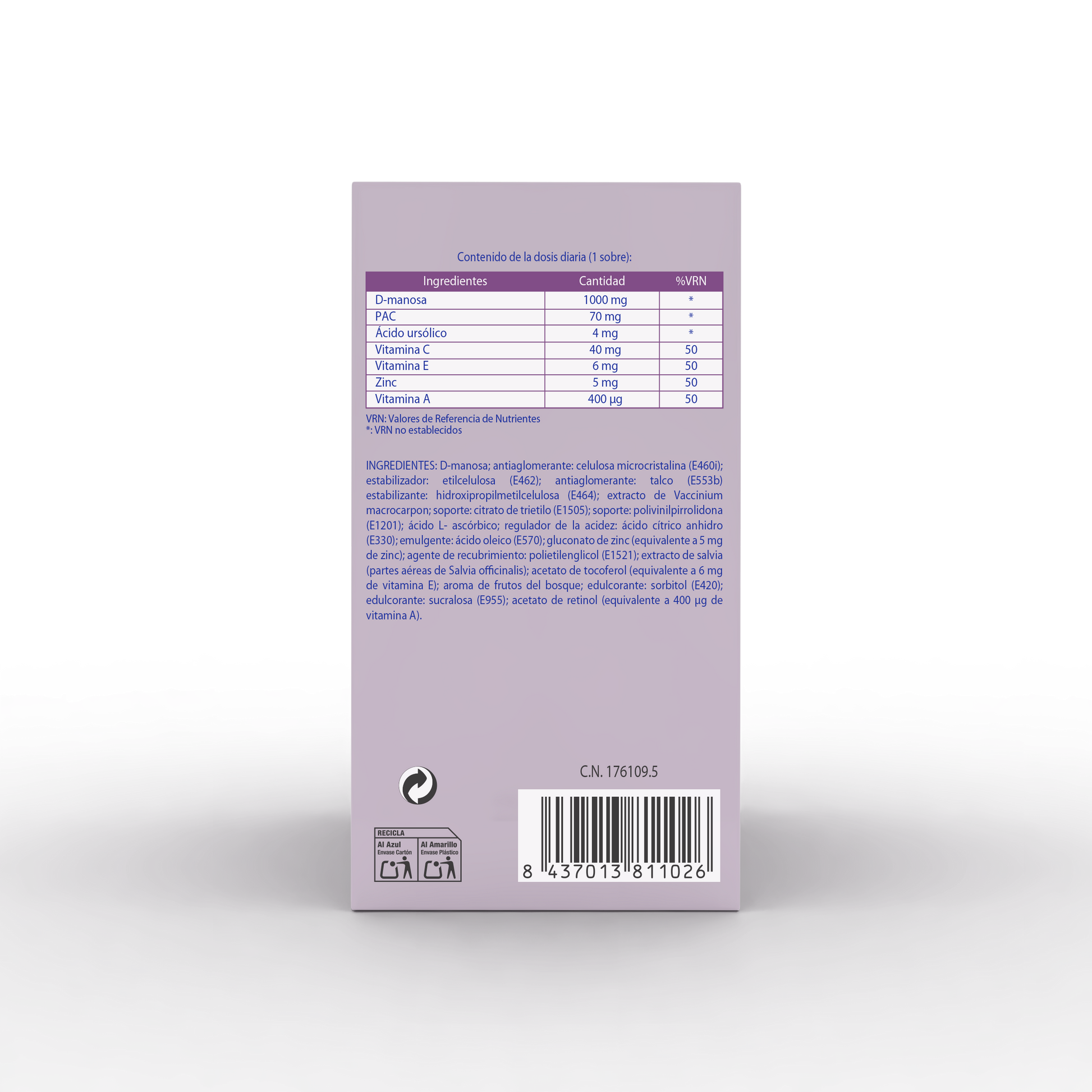 - Proantocianidinas del arándano rojo (PAC) para evitar las recurrencias de las infecciones.